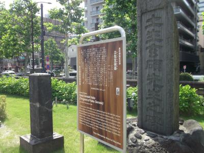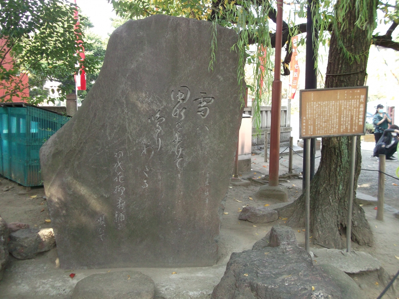 浅草神社の境内の一角にこの石碑が立っていました。初代花柳寿輔は日本舞踊花柳流の初世家元で、江戸時代末から明治初期にかけて多くの舞台の振付を行った人物です。句碑はかなり立派な造りで、「雷は 田町をよけて 鳴りわたる」と彫られています。