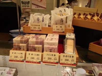 横浜駅東口隣接のそごう地下食料品店フロアにある、和菓子の鶴屋八幡のショップです。中に餡がたっぷり詰まった「百楽」が並んでいて、定番のつぶ餡、こし餡のほか、季節限定の桜葉入りこし餡の「さくら百楽」も販売されていました。大島桜の葉が餡に混ぜられていて、季節感のある風味を楽しめました。