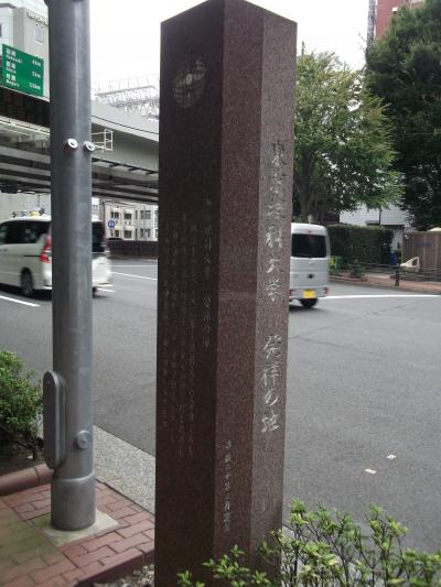 地下鉄九段下駅から歩いて5分ほど、専大通りの首都高高架と交わるあたりの緑地の一角にこの石碑が立っていました。理科大というと神楽坂のイメージですが、1881年に前身の東京物理学講習所が設立されたのがこの場所だったそうです。石碑がひっそりと140年の歴史を伝えています。