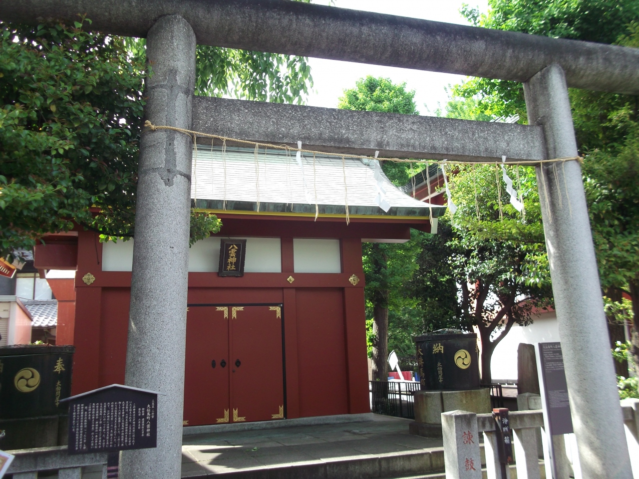 神田明神の敷地内にお社がある神社です。小舟町八雲神社、江戸神社とともに祇園牛頭天王三社と呼ばれていて、その二の宮だったそうです。鮮やかな朱塗りのお社はとても映えて見え、その前には立派な造りの鉄製の天水桶が置かれていました。