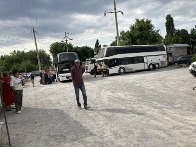 バス自体は特に難しいことはないです。国境のガソリンスタンド裏の駐車場でバス待ちをし、キルギス側とは違ったバスに乗ることくらいですかね。カザフ側のバスドライバーはキルギス側のバスでは運転手横に座っていて、出発時に国境についてからのことを大声で説明してくれます。英語ではないので外国人にはわかりませんが。。
