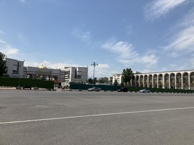 マナス王像のある国立博物館側は囲いはあるものの、マナス王像も見えるし、一か所囲いが外れたところから中に入っることができました。道路を挟んで反対側の広場はクローズで絶賛工事中でした。広場の大きさを感じてみたかったので残念。