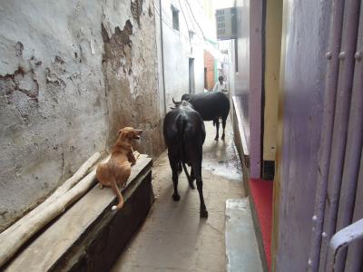 ゴードリヤー交差点でサイクルリキシャに交渉して、往復200ルピーで行ってもらいました。途中の道は未舗装のガタゴト道で、座っているのもきつかったです。。