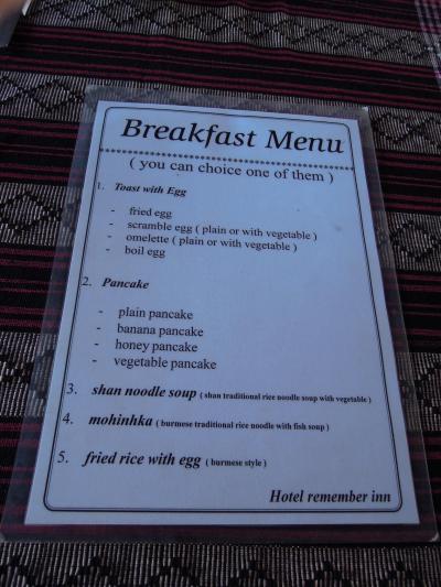 朝食は宿泊費に含まれており、ミャンマー、中華、インド、ウエスタンと