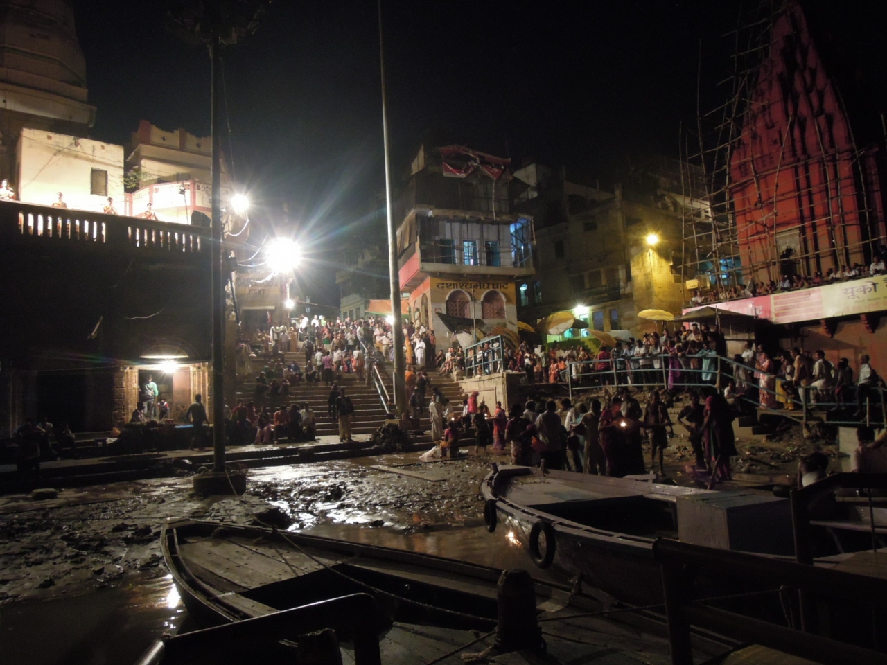 9月半ばに行きましたが、ガンガーの水位が高く、プージャーをどこでやるのだろうと思っていたら、ガンガー沿いのレストランの2階バルコニー部分でやっていました。
