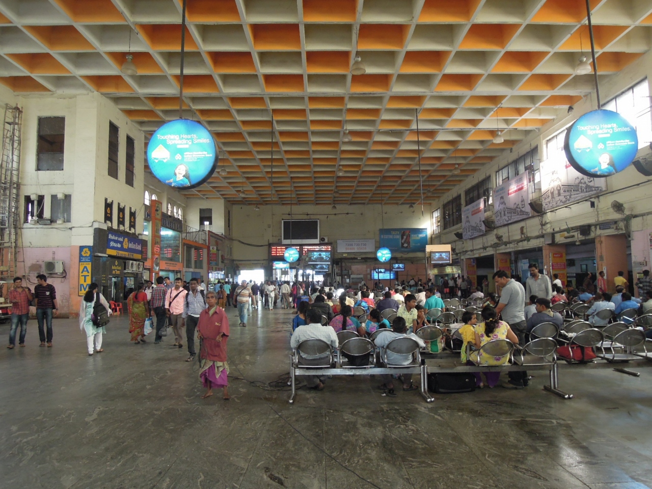 駅構内にベンチが並んでいて、コルカタのハウラー駅みたいな感じでした。