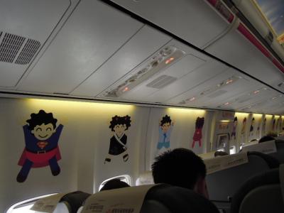 機内では、ゲームをやって、勝った人には景品を、、っていうのが