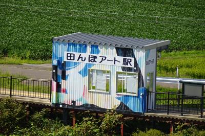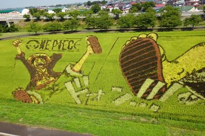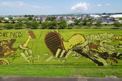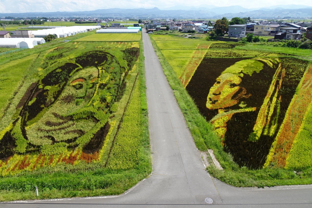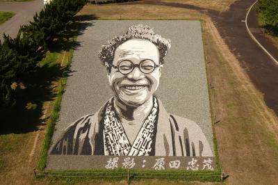 2023は棟方志功とフェルメールが左右の田んぼに表現されていて見事でした。初夏の頃が一番図柄がはっきりするようですが、八月も十分綺麗でした。