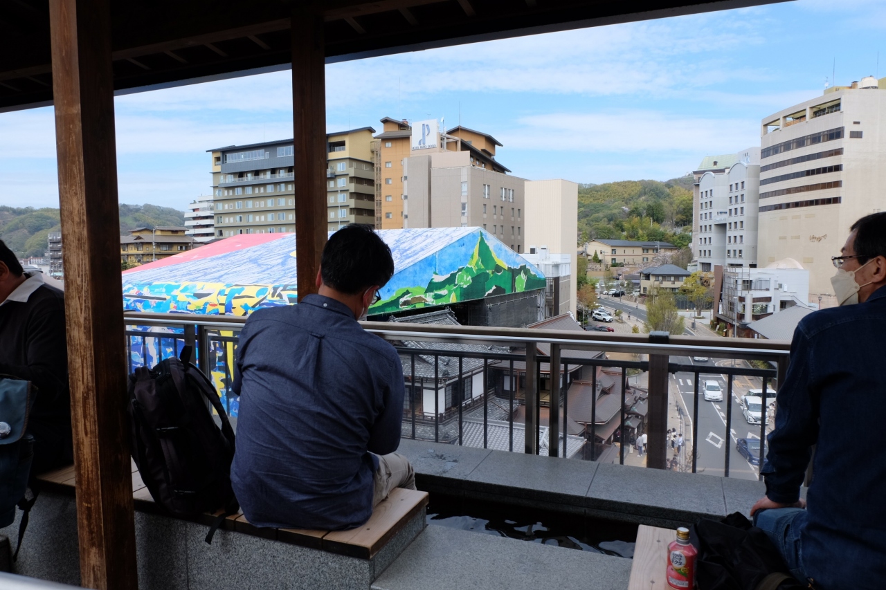 道後温泉本館裏手の山の上にある展望所です。道後温泉本館改修と同時に造られたようです。道後温泉本館は改修中でフォトジェニックな覆いで周りが取り囲まれていますが、それを上方から見下ろすことができ、爽快な場所でした。足湯もあり、温泉に浸かりながら道後温泉を見下ろすのがおすすめです。