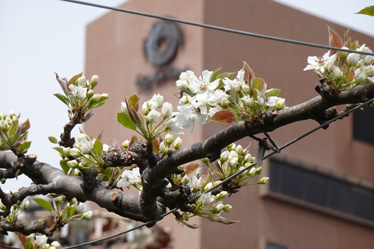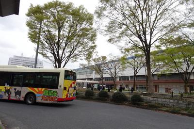 鳥取駅の北口出てすぐ駅前広場の左側にありました。バスターミナルの側には二十世紀ナシの花が咲いていて、旅情を誘いました。