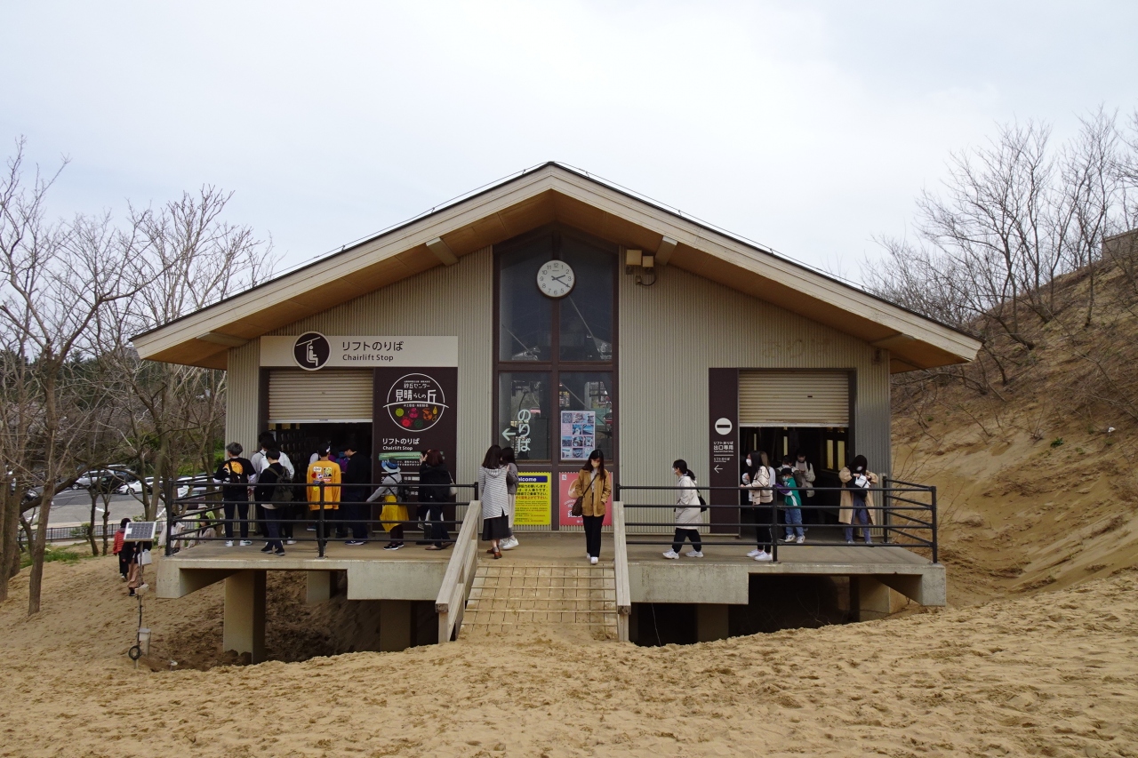 鳥取砂丘を見渡せる場所、高台にあります。砂丘へは砂丘観光リフトで繋がっているので、砂丘散策の前後に簡単にアクセスできます。景色は素晴らしく、お土産屋さんもあります。