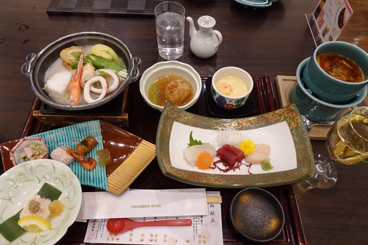 二食付きでしたので、一食はホテル内で、二食目は、駅のショッピングモール内の居酒屋さんにしました。どちらも、地元の郷土料理が提供され、美味でした。