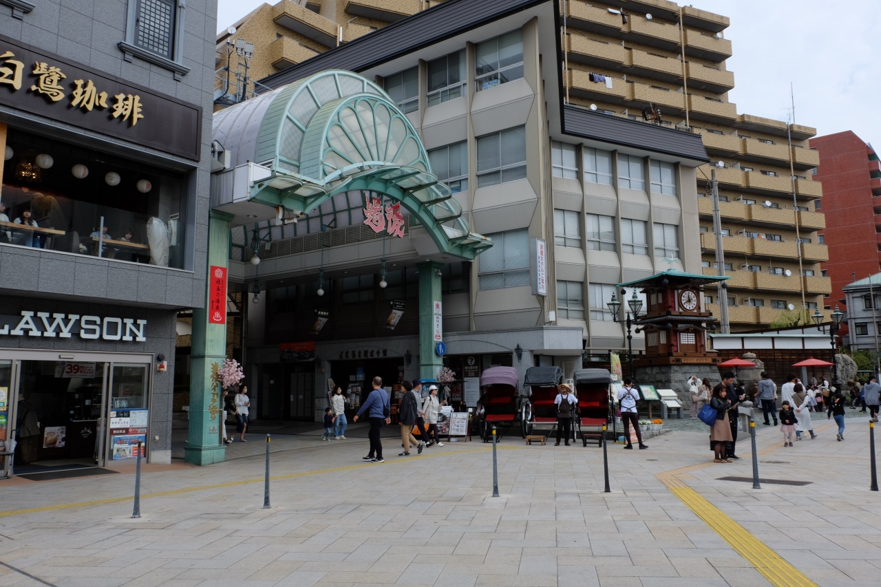 松山の道後温泉にあるアーケード街です。温泉のアーケード街としては、全国的にも賑わってる商店街で、観光客であふれて活気がありました。