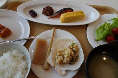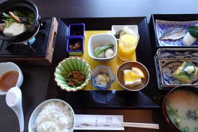 夕食は無難に地元の食材を使って美味でしたが、前日に泊まった萩のホテルが同じ価格なのに素晴らしい夕食とホスピタリティだったので、つい比べてしまいました。