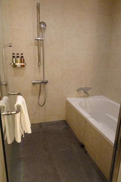 お風呂は温泉の景色の良い大風呂があるからか、部屋はシャワーブースだけでした。