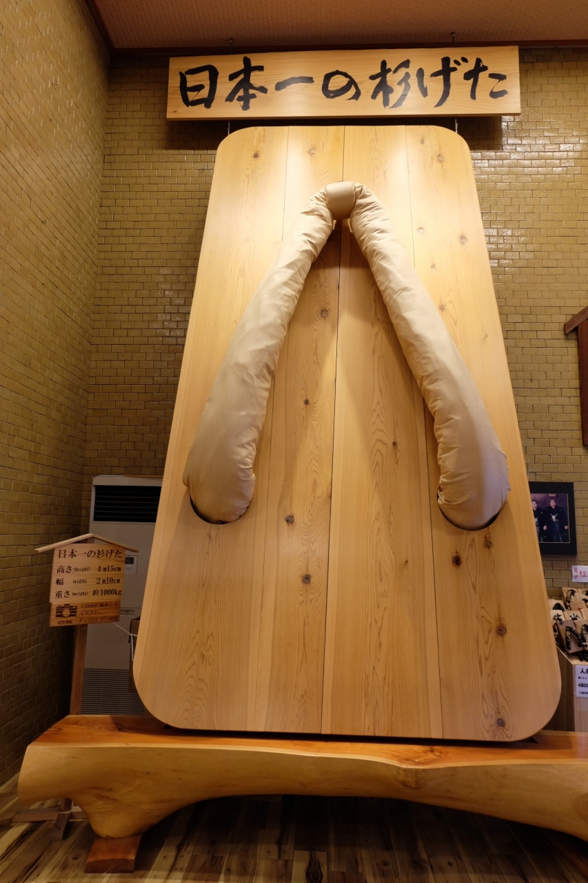 日本一大きな杉下駄が見ものです。入り口入って右側すぐに縦かれてありました。