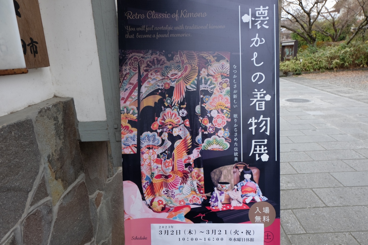 建物自体がとても素敵なので、目を引きます。春の豆田町のおひな祭の時期には、懐かしの着物展が開催されていました。色々と工夫をされて興味をひく交流館でした。