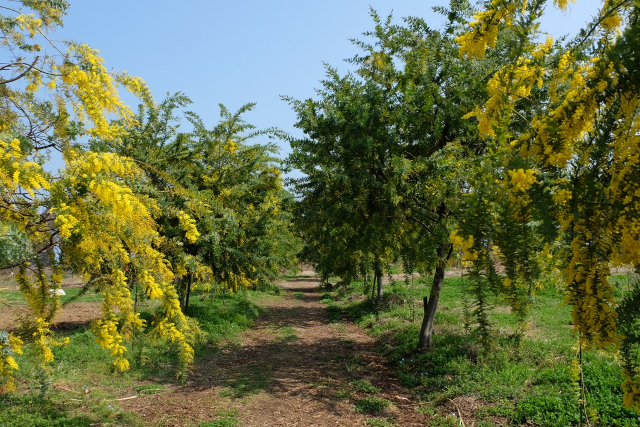 今回はミモザの季節、初めて訪れました。広い園内に大きく成長した木が点在していたり、左右に並木になっていたりします。