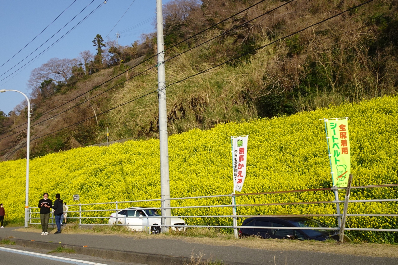 海に一番近いフォトジェニックな下灘駅から少し北、松山方面へ走ると、海に面した一面菜の花で、これまたフォトジェニックで、沢山の人が写真を撮っていました。- 旅行時期