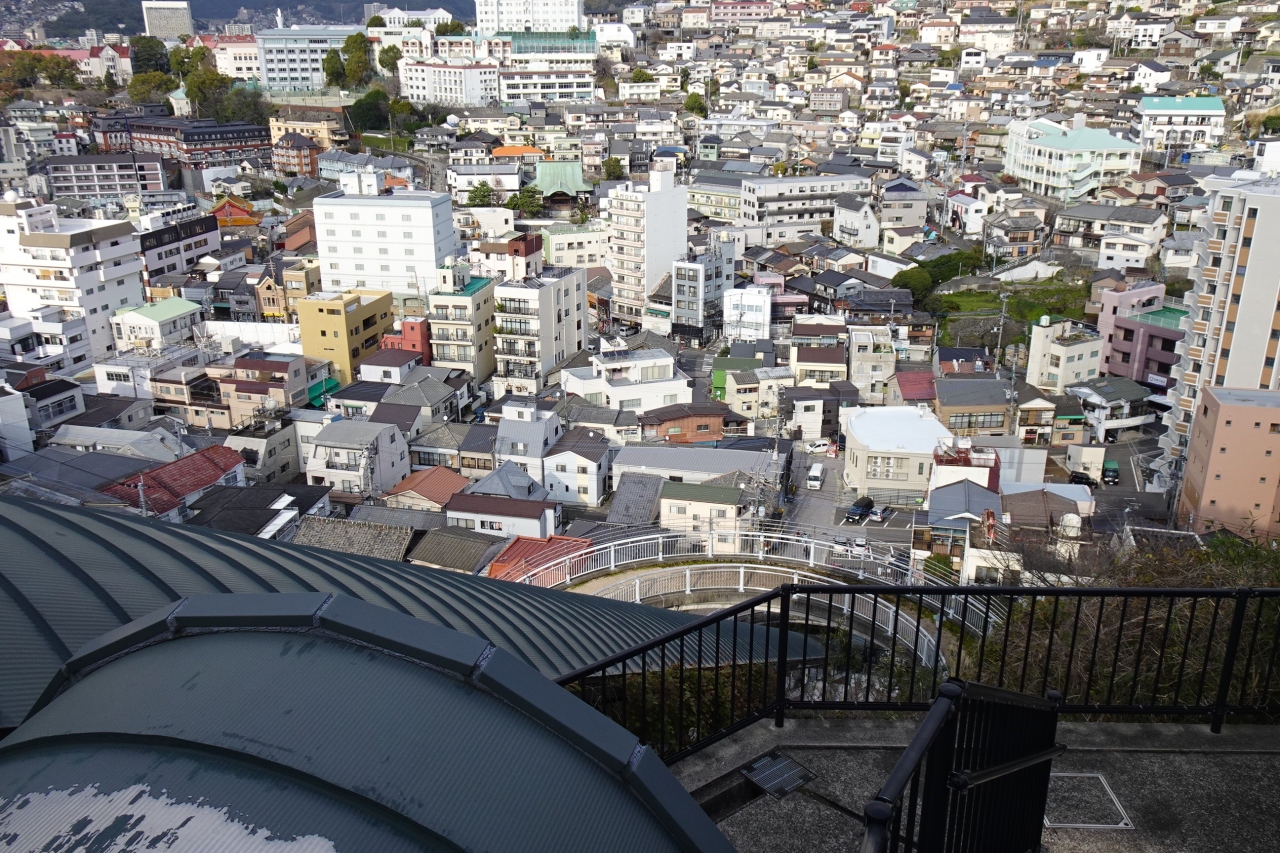 グラバー園のてっぺん付近と急傾斜の下までをつないでいる乗り物です。斜めになったエレベーターという感じの乗り物です。急傾斜の移動が容易にできるようになっていて、地元の方の足のようです。