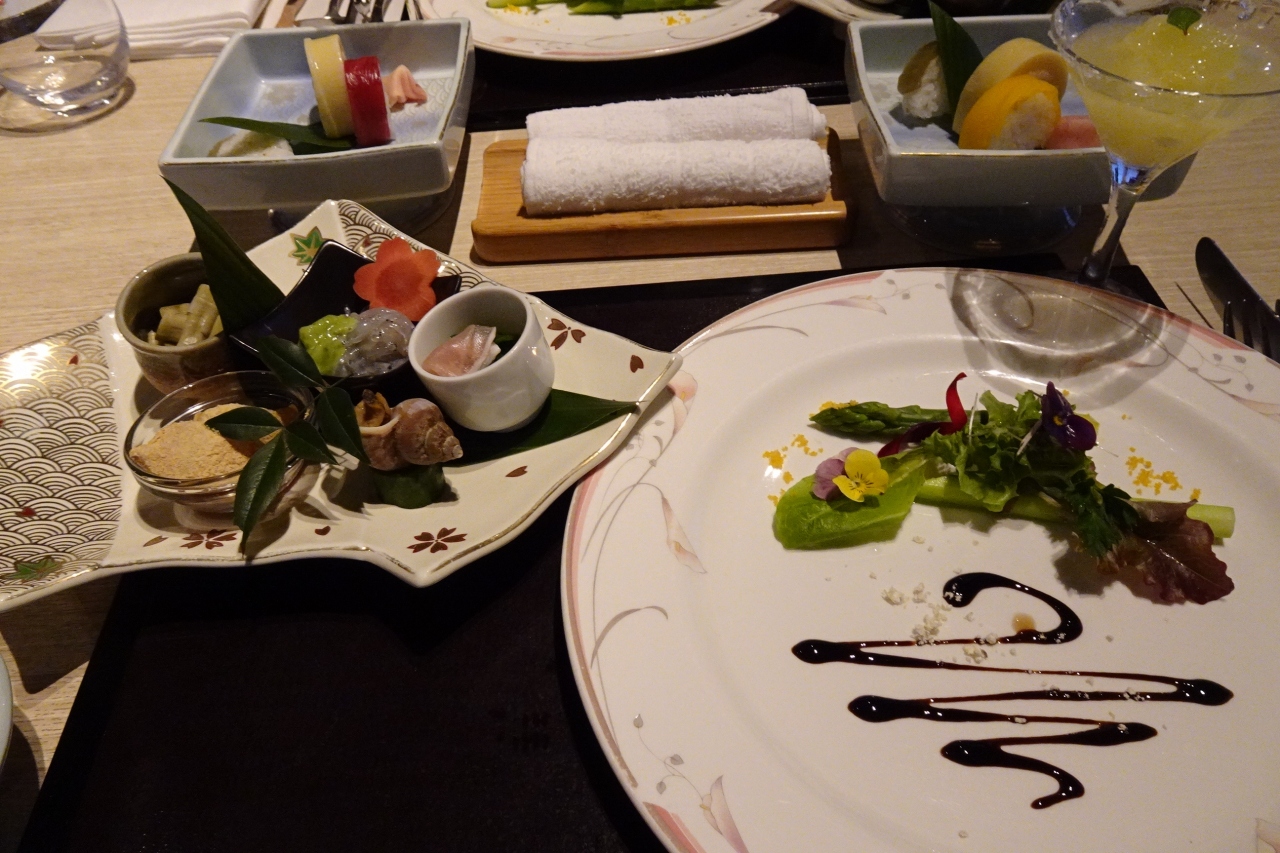 お食事は、オーベルジュとのことで、勝手に洋食と思いましたが、お箸が用意され、和洋折衷でした。地元産の食材が使われていて、ほぼ和食で豪華で美味でしたが、お肉の脂分が多過ぎたのが残念でした。赤身かヒレに変えてもらえると助かりました。・・高知のお肉は窪川牛という美味なお肉・・提供されたら最高だったのに・・とつい思ってしまいました。