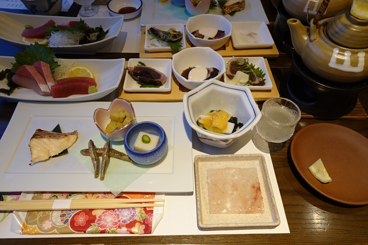お食事はテーブルが狭いのが少し気になりましたが、大海原が見下ろせ、地元食材の数々、美味でした。小振りな卵、土佐ジローも美味でした。