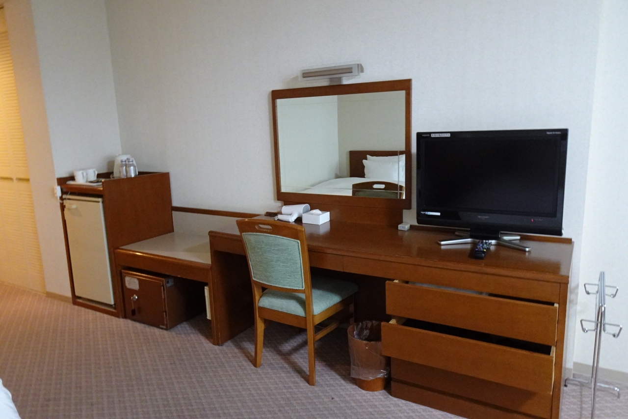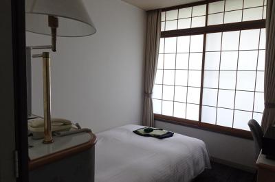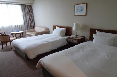 大きな建物、高層ホテルで12階のツイン、北アルプス側の部屋でした。