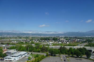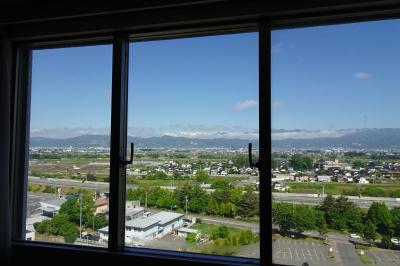 眺望に感動しました。五月の半ばの快晴の真っ青な空、冠雪した北アルプス、山の緑、忘れられない絶景パノラマが贅沢にも部屋から見ることができました。