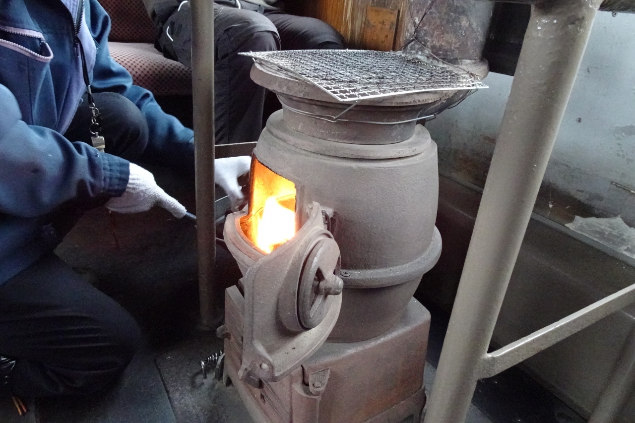 ストーブ列車に乗っていると外の寒さが嘘のように温かい。