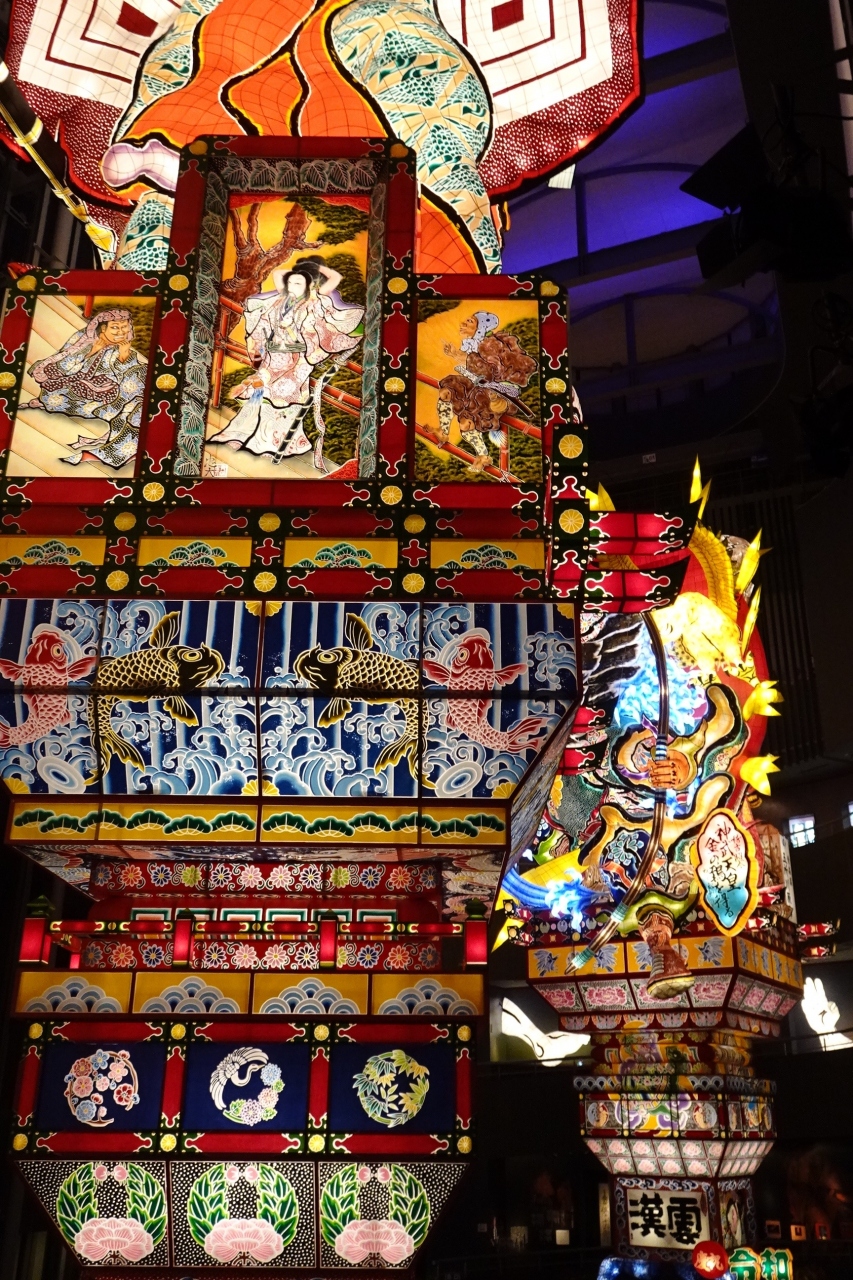 立佞武多は高さ7階分もあるそうですが、この館は吹き抜けになっていて、立佞武多数台をそのまま展示してあります。
