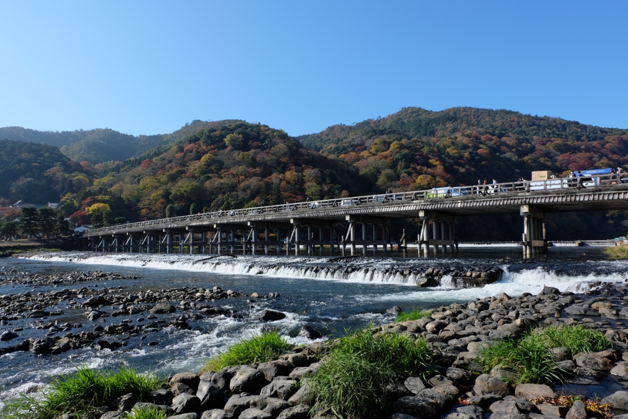 その名の通り、ミニ渡月橋と言う感じの橋です。渡月橋は紅葉の時期、とても混んでいて、立ち止まるのも顰蹙なくらいですが、こちらの橋から上流を観ても、とても綺麗でしたので、穴場な場所かもしれません、上流を眺めるのに。- 旅行時期
