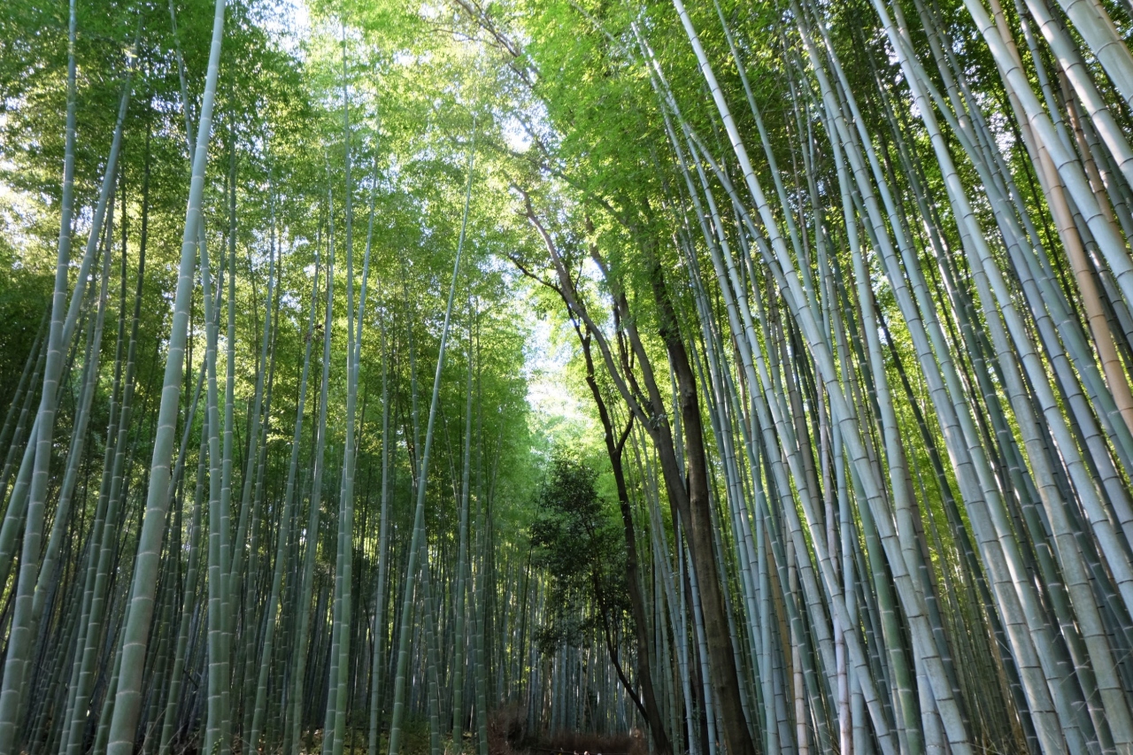 嵐山天龍寺の裏手にある竹林の径はとても風情があります。小径の左右に孟宗竹が力強く緑も濃く天に延びています。