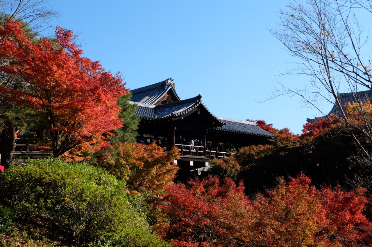 真っ赤に色づいた紅葉が入り口付近で見事で印象的でした。天龍寺を抜けると竹林の道へと、続きました。- 旅行時期