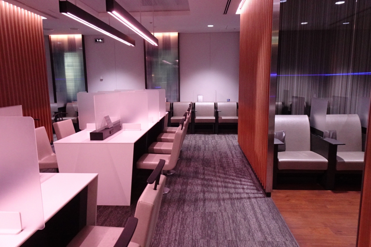 ラウンジ内は落ち着いた雰囲気でビジネスエリアだけでなく、すべてに電源が用意されています。- 旅行時期