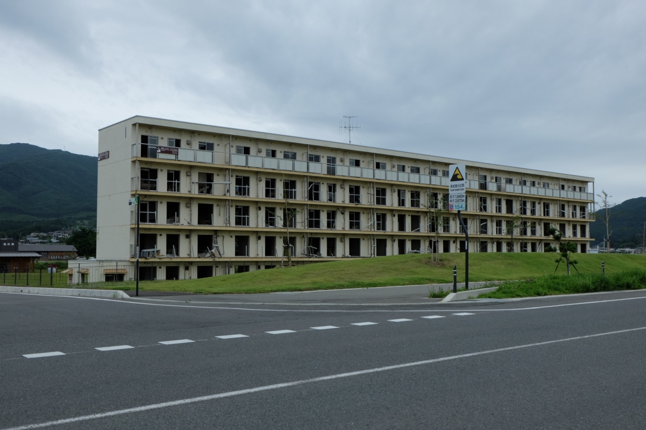 陸前高田・高田松原には津波復興記念公園と震災伝承施設がいくつかありました。その中の一つです。道沿いに建った五階建ての住宅ですが、四階までが完全に水没した様子がはっきりとわかります。一見して津波の到達点がわかる建物です。