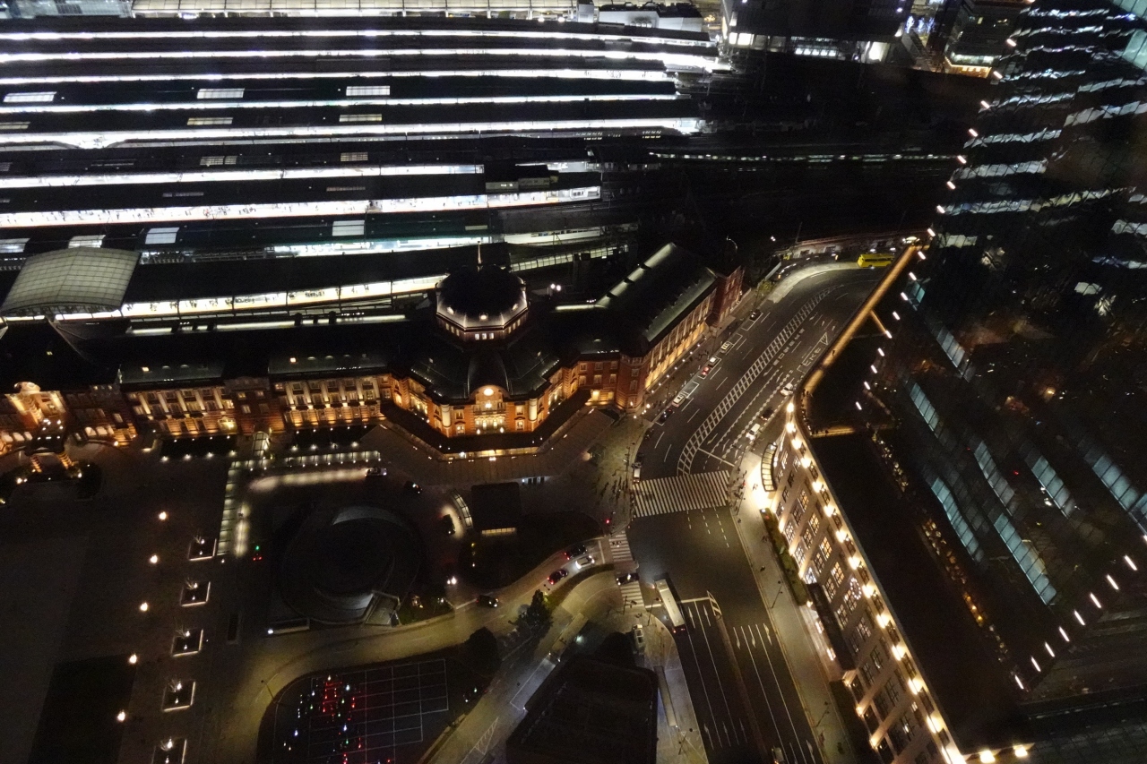 早めに予約、窓際希望と伝えておいてくれて、眺望の良い席でした。窓一面に広がる夜景、眼下には東京駅を見下ろしながらの食事でした。