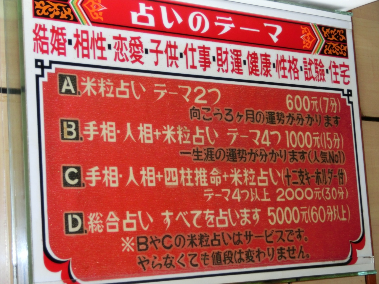 その後行天宮地下の母の妹分の占いにも行きましたが、ほぼ同じことを言われたので、どこでも一緒なのね、という感じでした。- 旅行時期