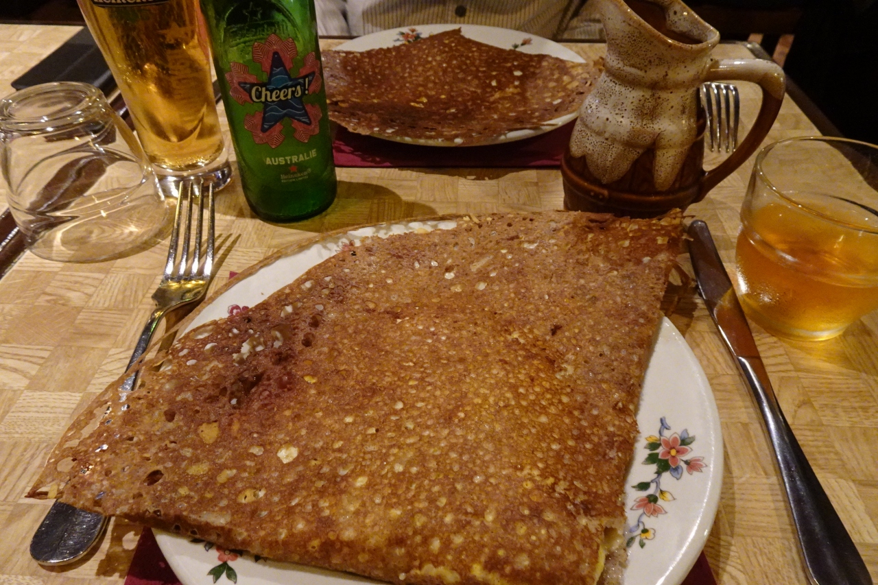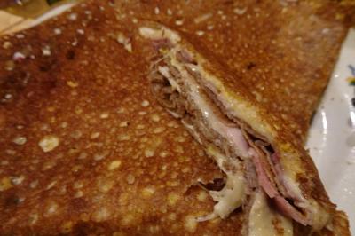 チーズと薄いハムを挟み二つ折りにされてガレットは、外は香ばしく、中はチーズとハムとそば粉の皮が一体になって美味でした。