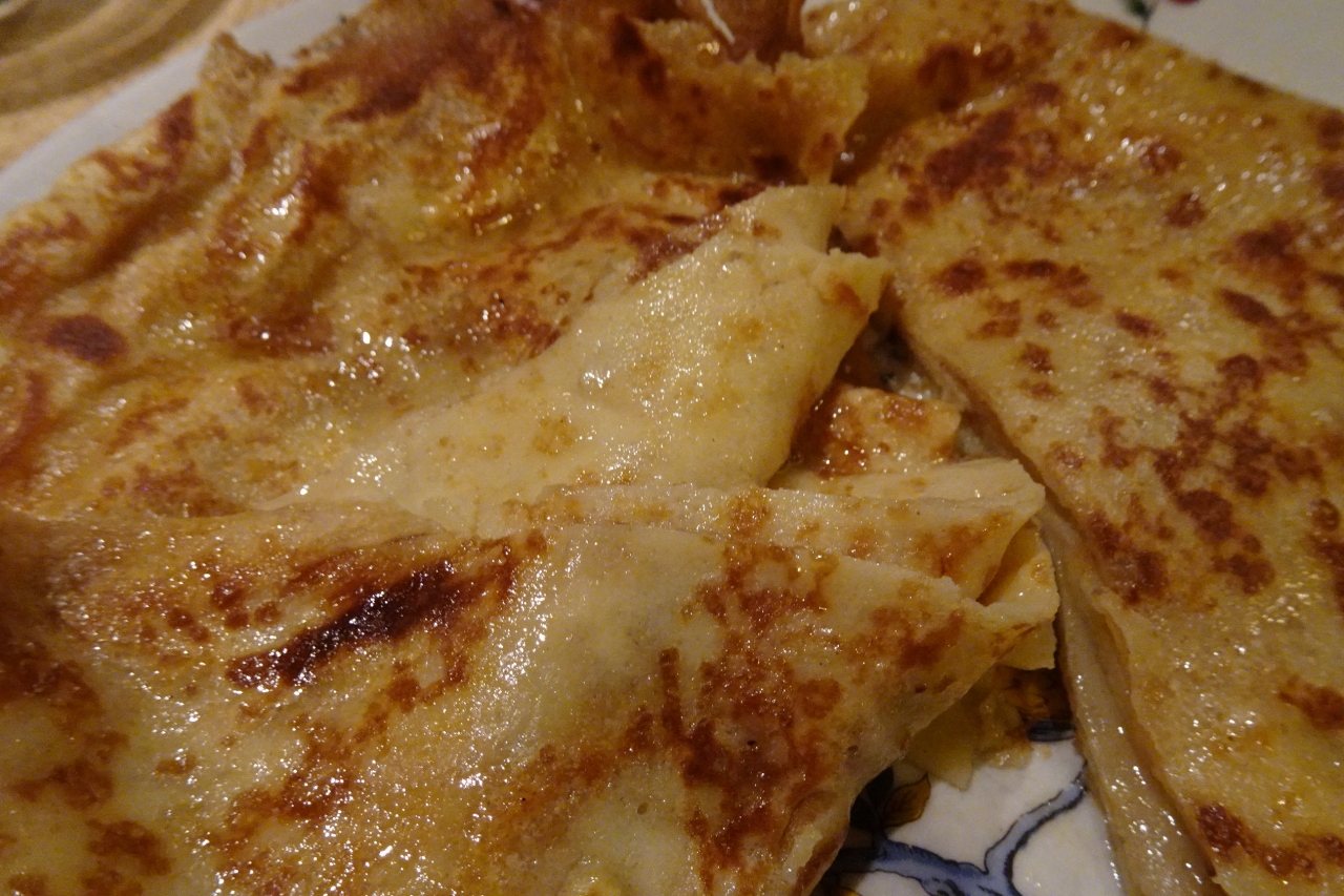 クレープはデザート扱いですが、ガレットより厚みがあってボリュームありました。酸味のあるコンフュチュールを塗って無造作に折られていました。こちらも美味でした。