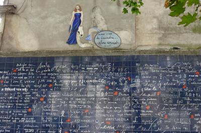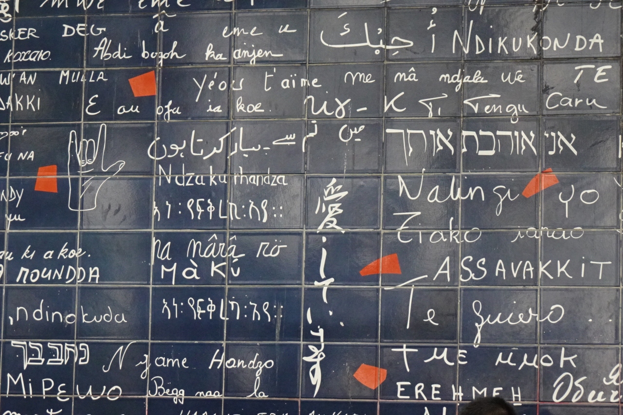 モンマルトルの丘のふもとにある、世界中の愛していますの言葉が描かれた壁です。