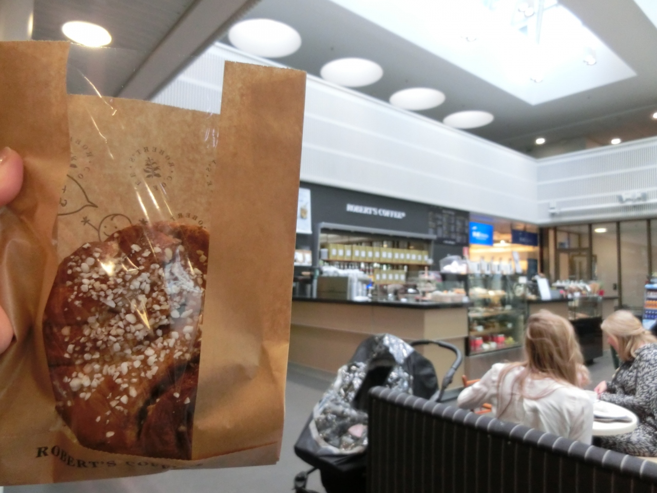 旅行ガイドブックでも、ロバーツコーヒーがお勧めらしいので、カンピショッピングセンターの西側にあるビルの地下に入っている店に行きました。店内は開放的で、子供連れのお母さん達がくつろいでいる状態でした。