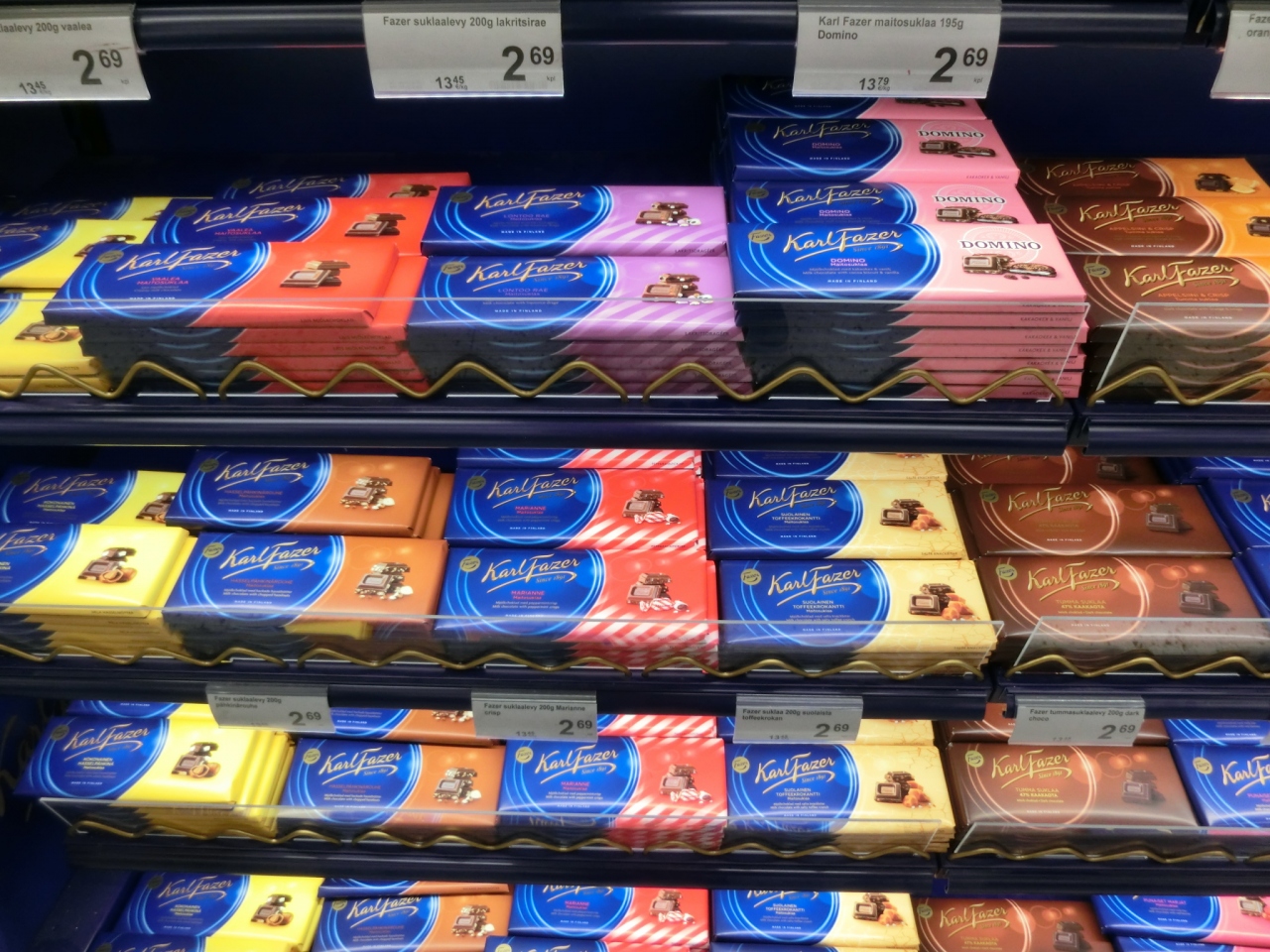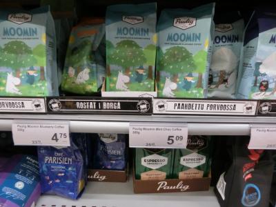 フィンランドのチョコレートはベリー入りで美味しく、コーヒー消費国のフィンランドのコクのあるコーヒーの品揃えは素晴らしく種類がそろっていました。パッケージもムーミンの柄だったりで見てるだけで楽しい。マリメッコのナプキンも多種ありました。