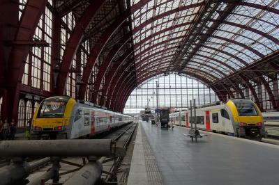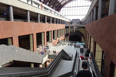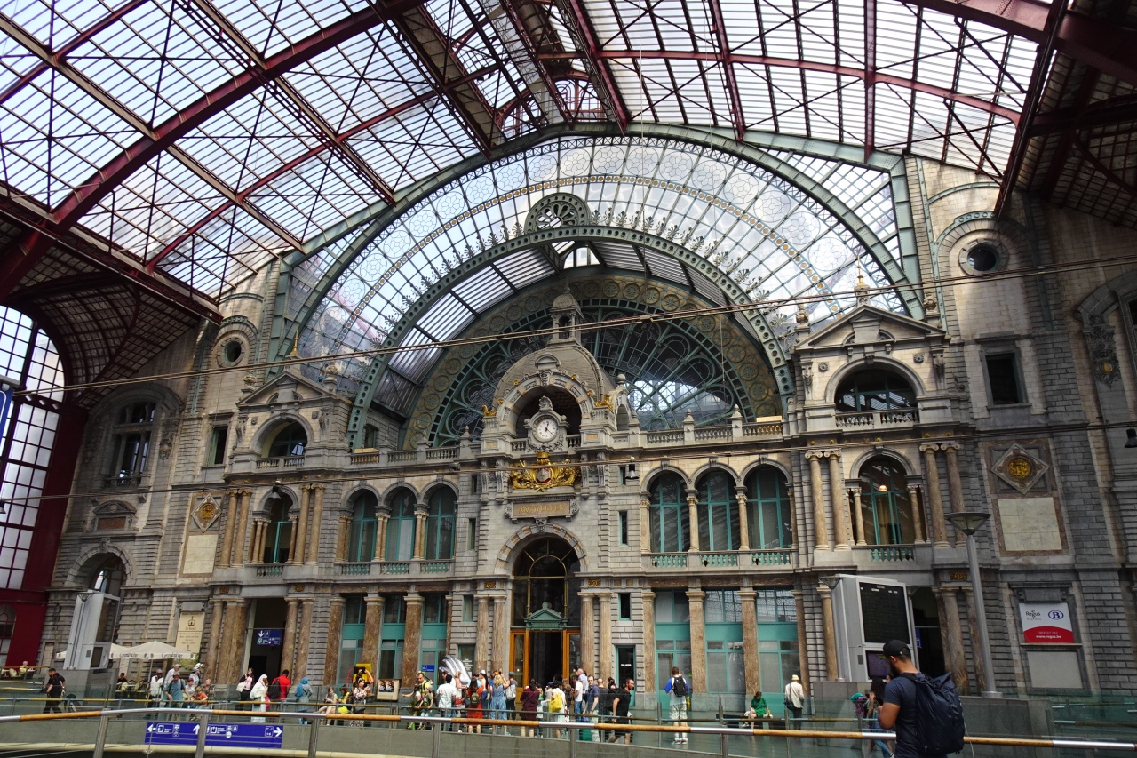 ブリュッセルからインターシティでアントワープに到着し、ホームに降りると、驚きでした。天井からの光に壮麗な、鉄道の大聖堂とも言われる壁面。