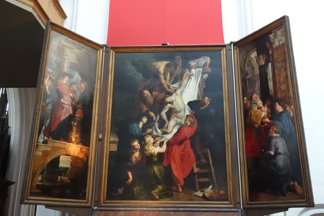 半分の尖塔は改修中でしたが、荘厳な外観です。中に入ると白い壁面で、美術館のような美しさです。ルーベンスの最高傑作祭壇画キリスト昇架、キリスト降架、聖母被昇天など、ネロの見たかった絵を間近で鑑賞できます。- 旅行時期