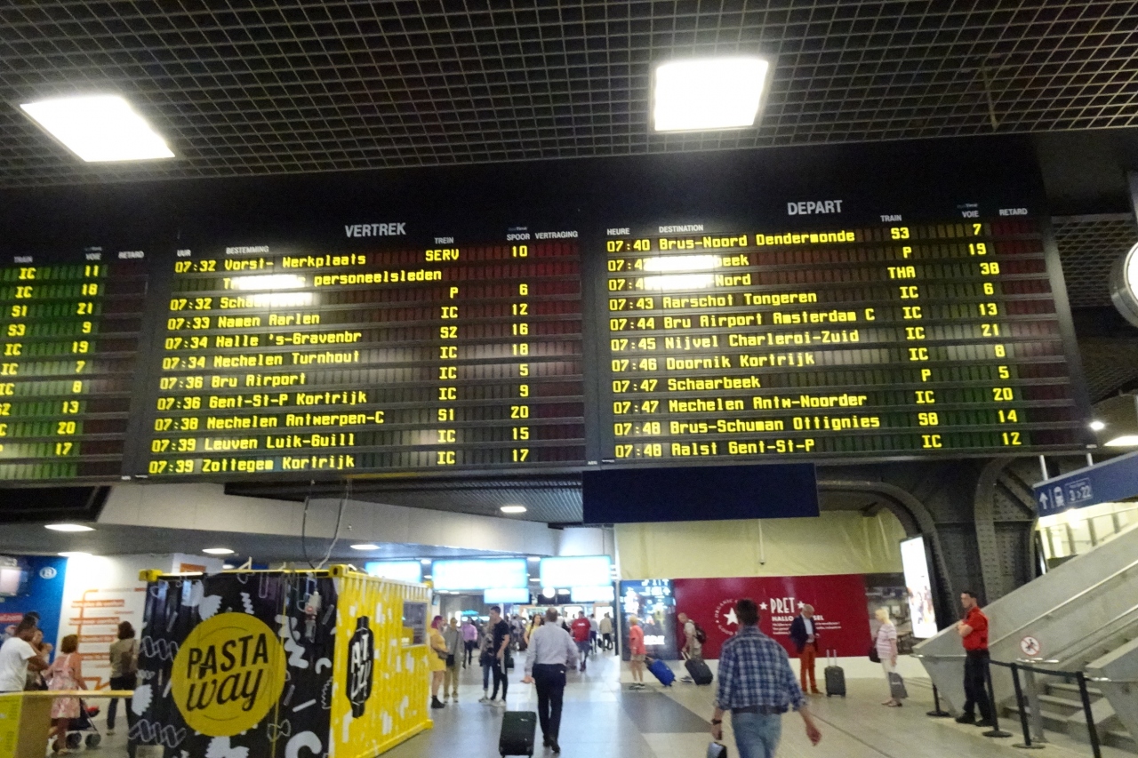 アントワープから復路ブリュッセル行のホームは地下深く、エスカレーターで下りました。荘厳な石造りの建物の内部に地下深くホームがあることにも驚きました。- 旅行時期