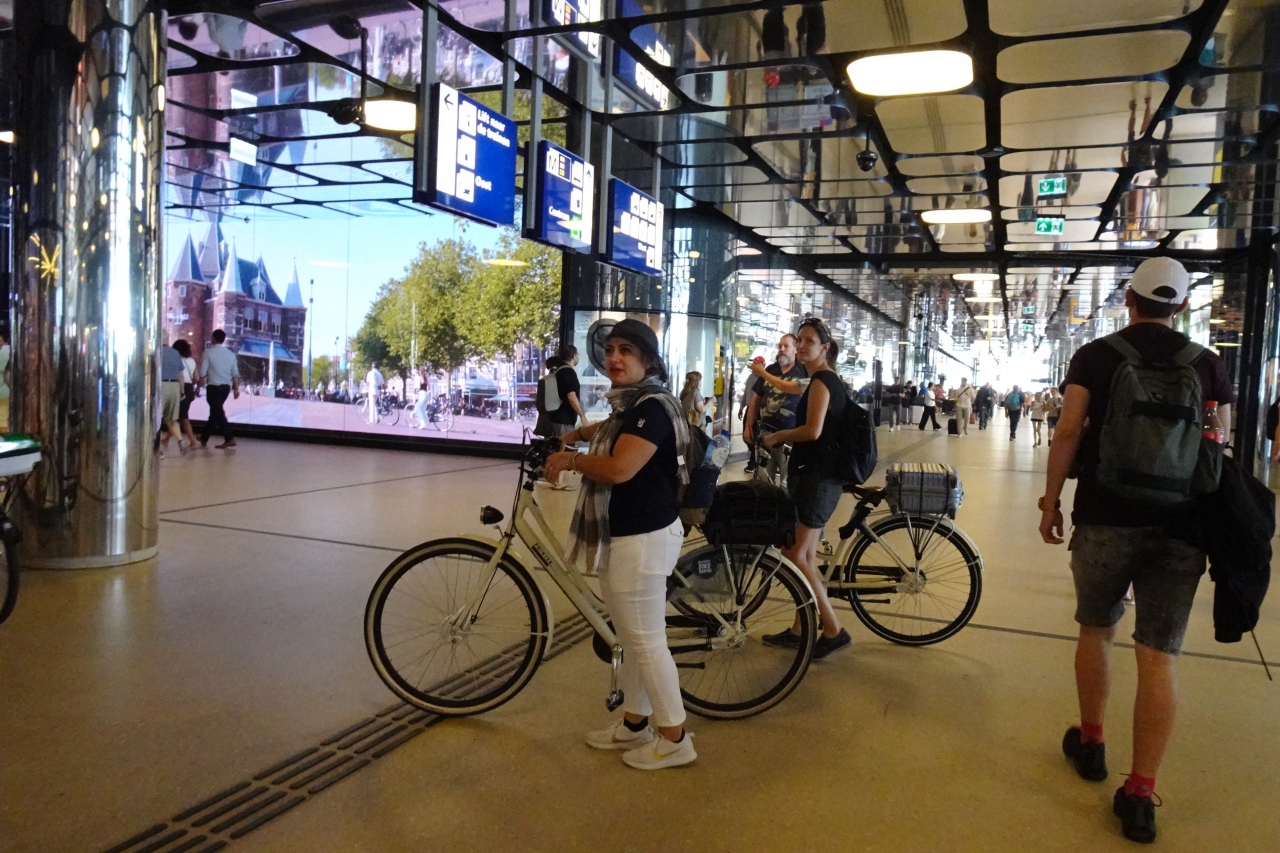 中央駅西側にはカイバースパサージュで線路の下を自転車と歩道が街側とアイ湾側の通路で行き来できます。