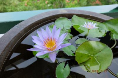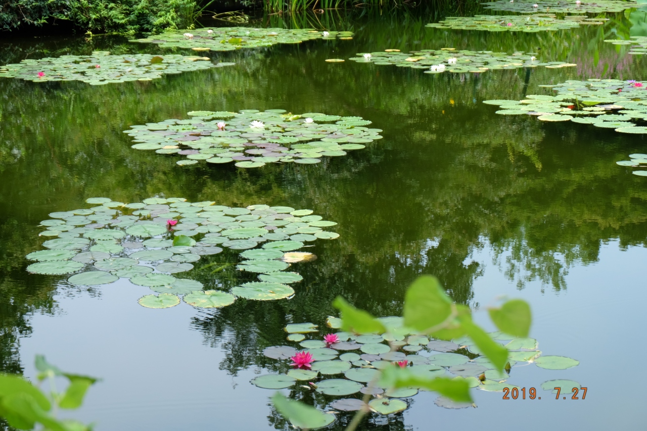 手入れの行き届いたモネの庭の池には色とりどりの睡蓮の花が咲いていました。フランスのモネの庭では咲くことのなかった、モネが夢見たという青い睡蓮が、気候の適した北川村では咲いていました。薄い紫がかった青色の小ぶりな花がとても印象的でした。