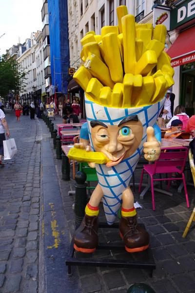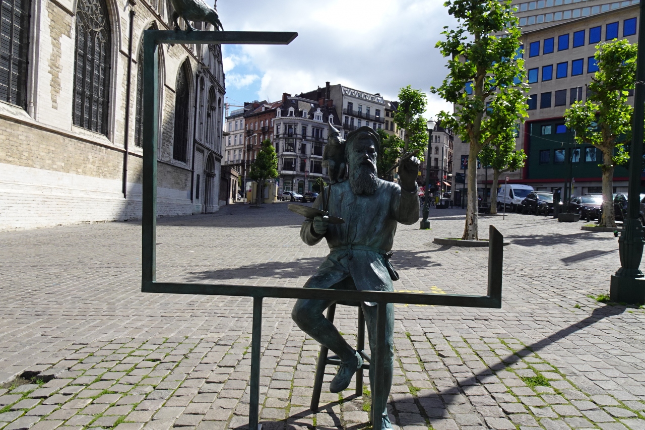 教会横にはブリューゲルが絵を描いている像があります。このそばのフリッツ屋さんのフリッツが美味しいので、ベンチで一休みしても良いかも。- 旅行時期