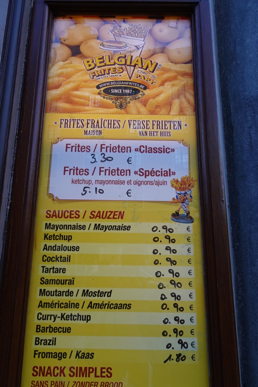 ベルギー流では、マヨネーズベースの色んなソースがあるのでお好みで注文すると、かなりの量かけてくれます。