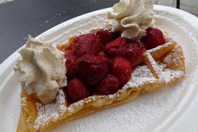 ワッフルは柔らかく薄いブリュッセル風にお好みのソースをかけるもの。